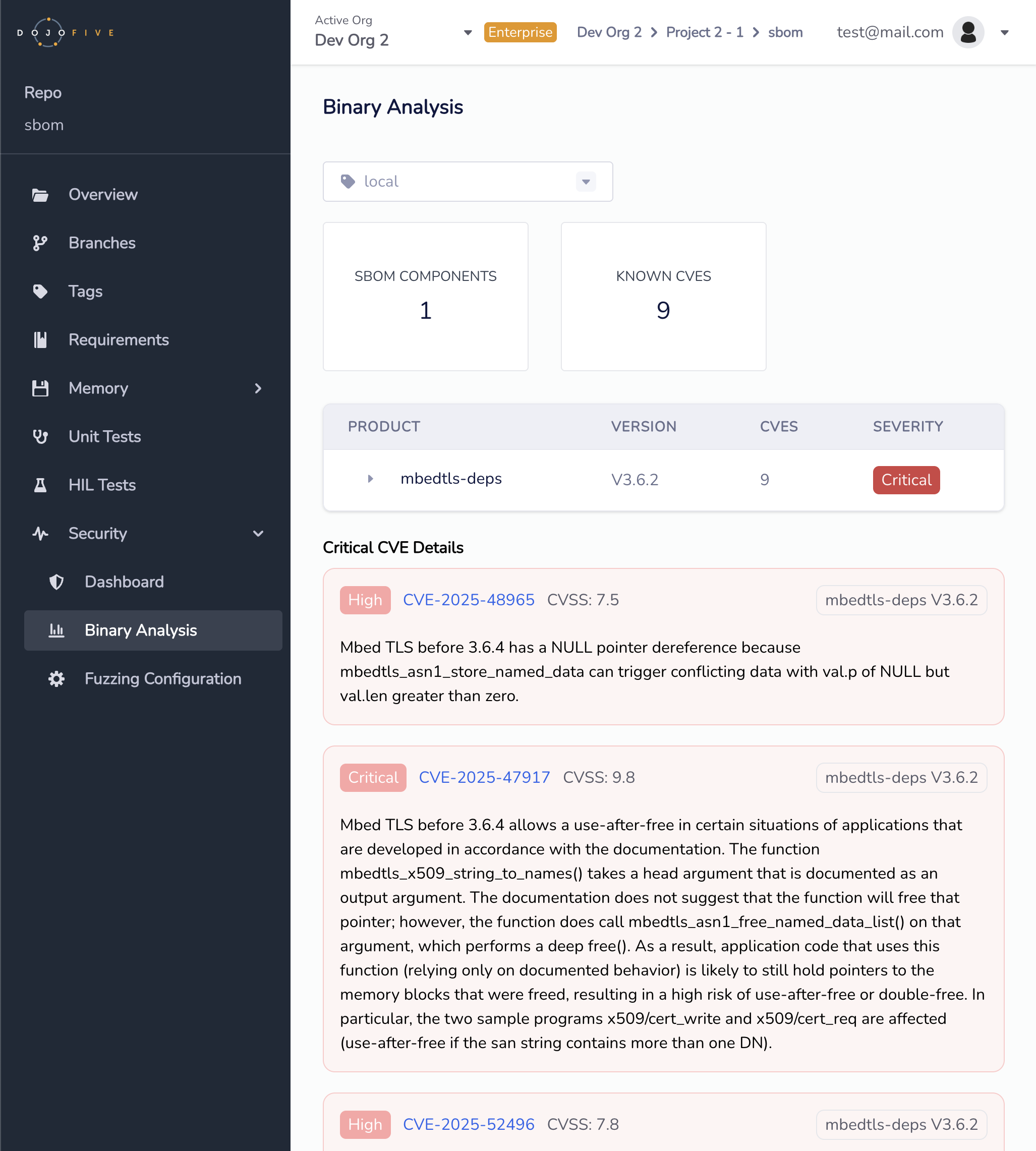 Open the EmbedOps platform on your favorite browser to check out the CVE Report.